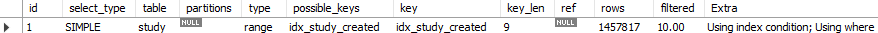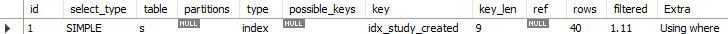 key도 idx_study_created 인덱스를 선택하고 있다.