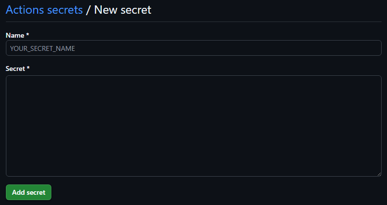 깃허브 레포지토리의 Settings > Secrets > Actions > New repository secret 로 따라 들어가면