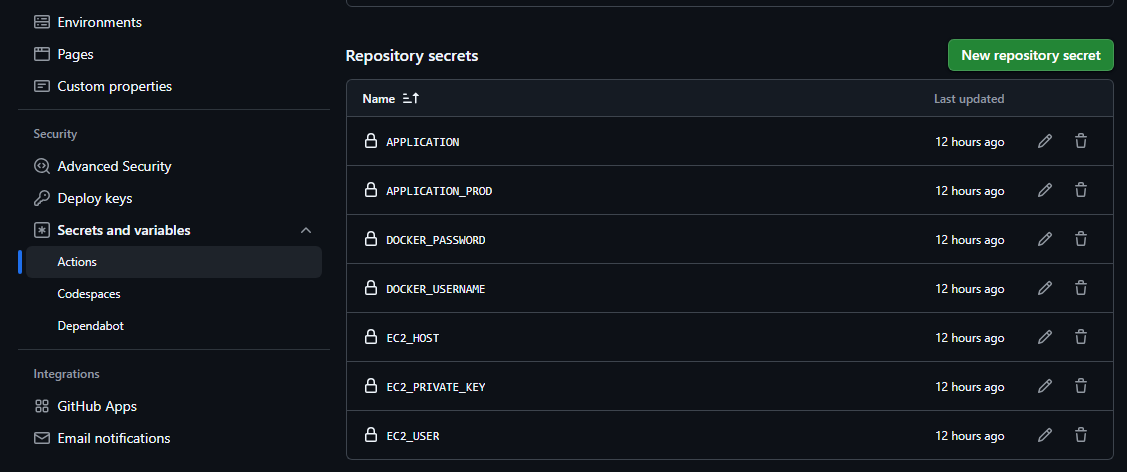 민감한 정보이기 때문에 깃허브에 올리지 않고 Secrets로 안전하게 관리해야한다.