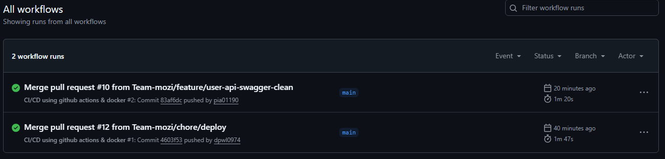 main 브랜치에 코드가 올라가면 CI/CD가 자동으로 동작한다.